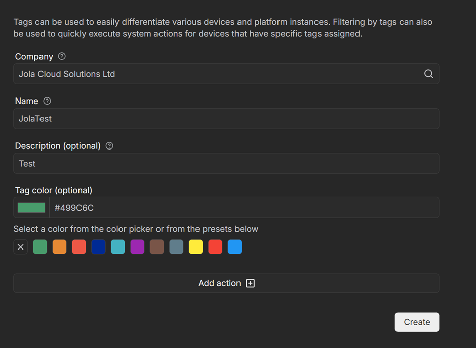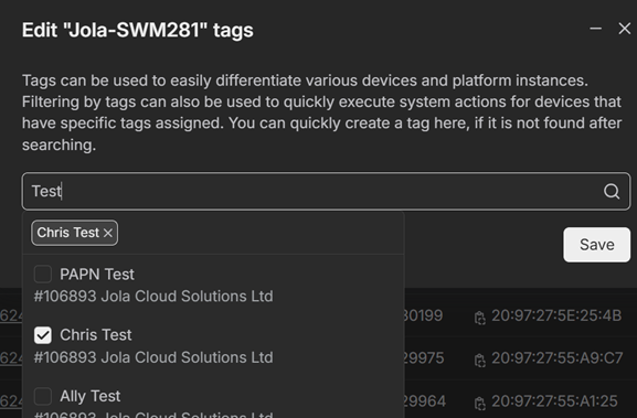 To add a tag to a device simply hit the tags option on the devices page and select.