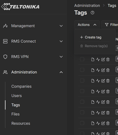 Create a Tag within RMS you will need to select Administration > Tags > Actions > Create Tag