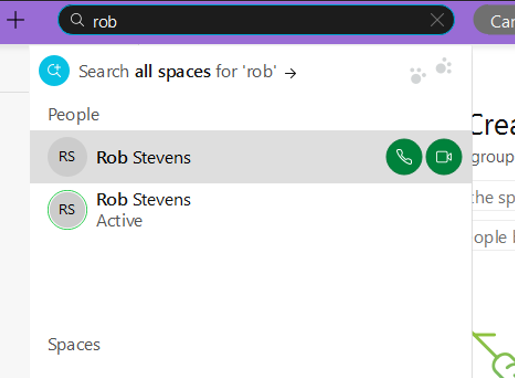 You can search for your contacts to message on the main search bar at the top of the Webex application. For internal contacts you can use name, phone number or email address to search. For external Webex users, you will need to search for their email address