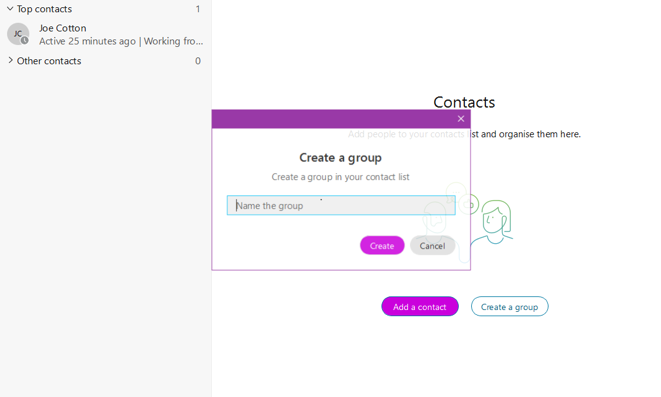 The Search Bar will allow you to search for users that have Cisco Webex (company contacts) or contacts that are in your group contact directory on the platform, you can also add external contacts to the application via the Add a contact