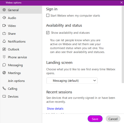 The dial pad section allows you to view your call history and make calls. You can video call other Cisco Webex users from this screen.