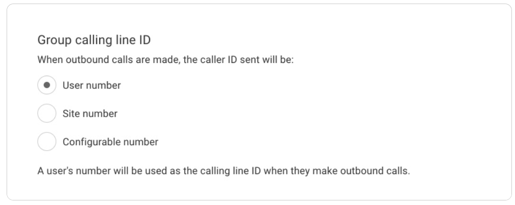 For calls between Users within the Site, they will see the other User’s personal Calling Line ID information, even when a Group Calling Line ID exists.