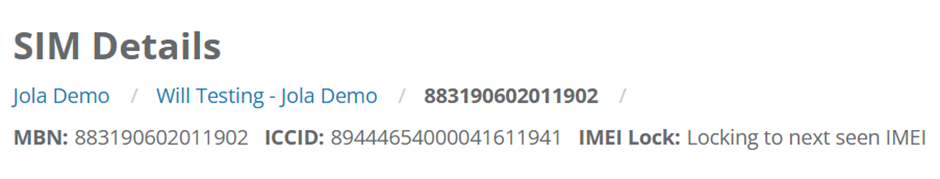 After the SIM has activated it will display as locking to the next seen IMEI (see screenshot below), once the SIM is used in a device for the 1st time the IMEI lock will be updated to that device’s IMEI.